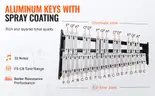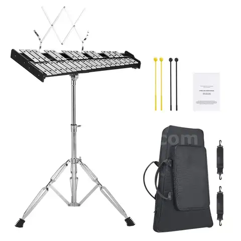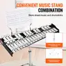 This professional 32 note xylophone boasts a range from G5 to C8, comprising 30 distinct notes organized into two rows: one for semitones and the other for whole tones. Crafted with precision using advanced spray painting techniques, it delivers crisp and rich tones. Each aluminum bar undergoes professional tuning, with clear note markings for easy identification. Constructed from high-strength electroplated material and featuring a sturdy dual-connecting leg structure, the stand ensures secure fixation of the instrument. With an adjustable height range of 25.6 - 37.8 inches and adjustable angles, it accommodates individuals of various ages and heights, facilitating comfortable standing for drummers.